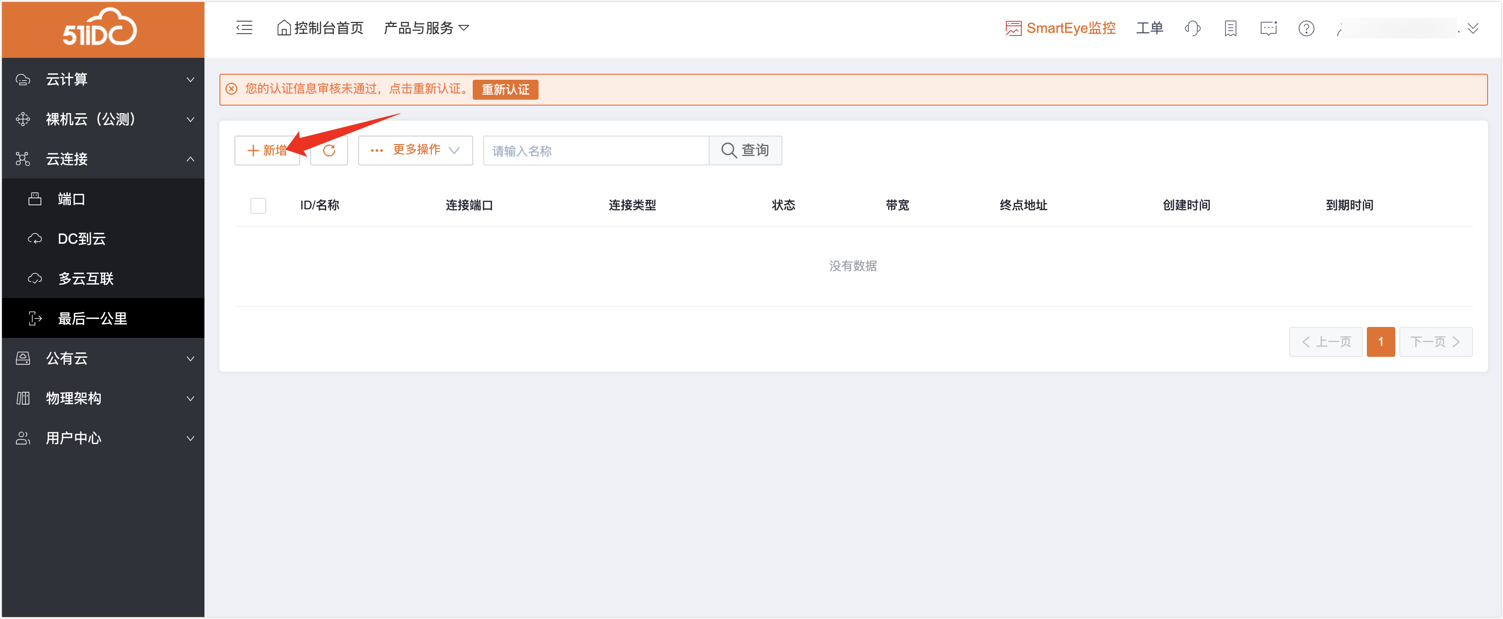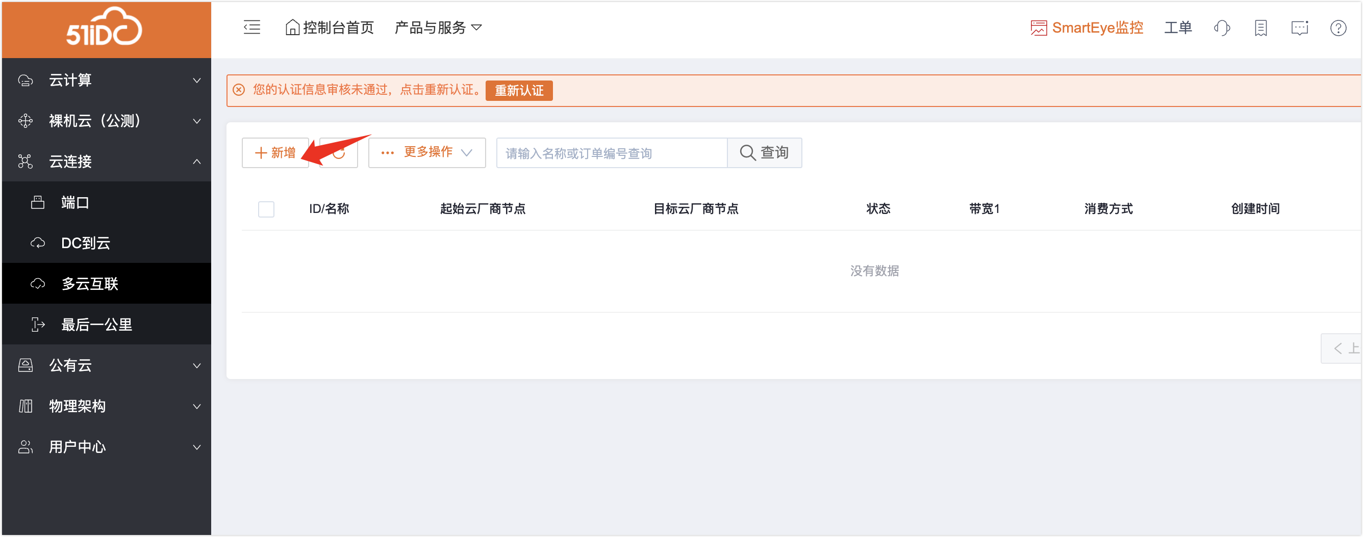 1、选中“多云互联”——“新增”按钮