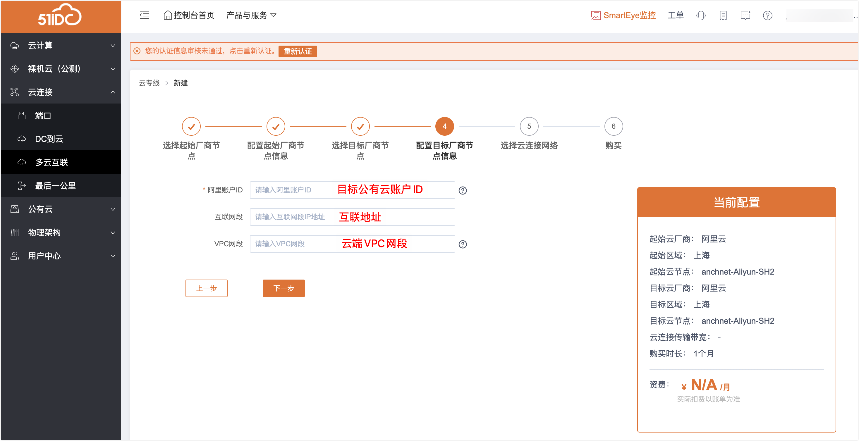 5、第四步:填写目标云厂商信息
