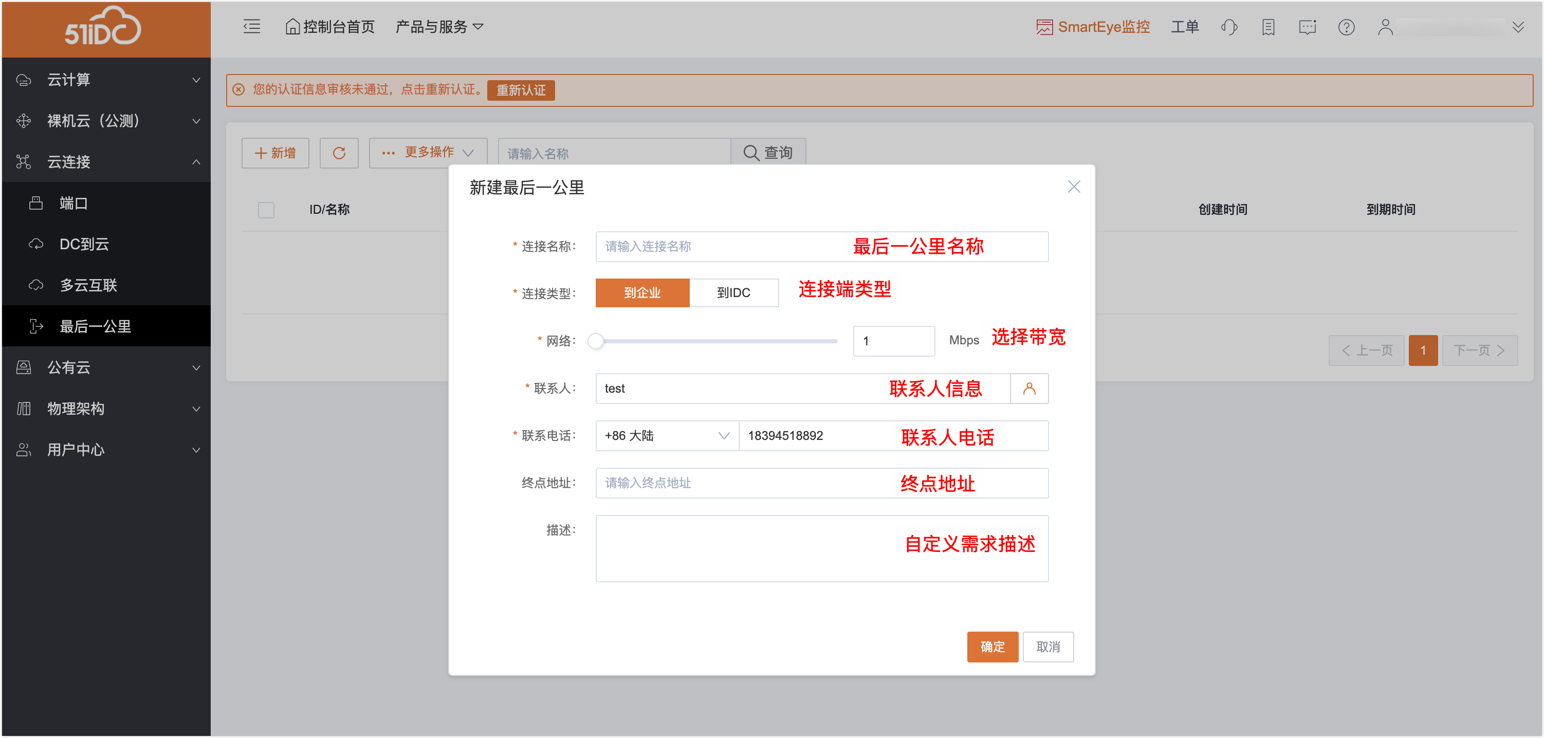 DC到云:满足我司计算资源用户需要与公有云的连接需求。